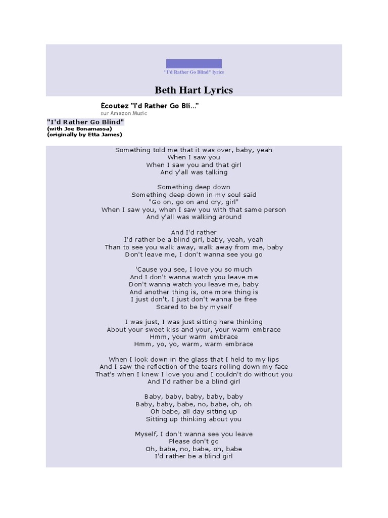 I D Rather Go Blind Beth Hart Pdf American Songs Songs